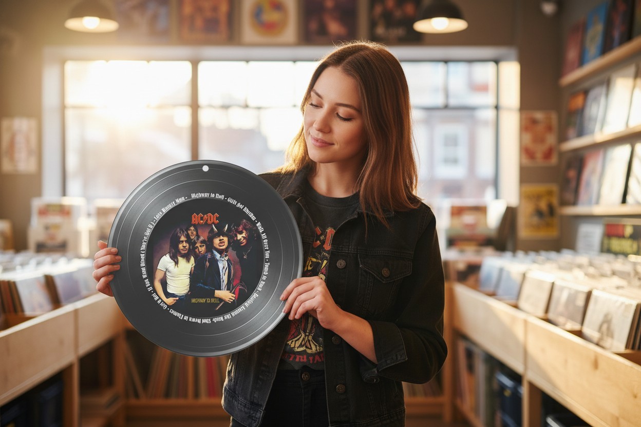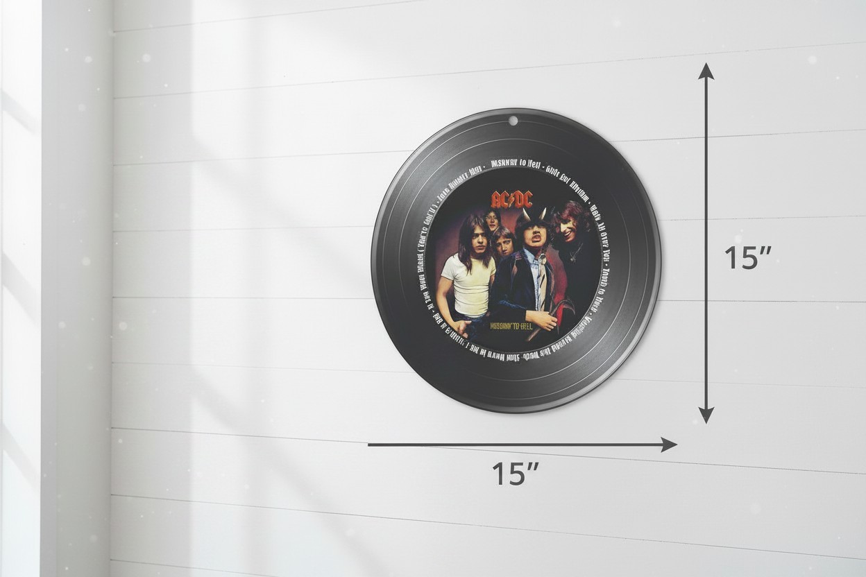 Experience the electrifying spirit of rock and roll with the AC/DC – The Rock and Roll Tour Vinyl Record replica. Handcrafted in small-town USA from heavy 14-gauge steel, this stunning piece features a powder-coated base for durability and a striking finish. Measuring 15 inches in diameter, it beautifully showcases the iconic Highway to Hell album, making it a perfect addition to any music lover’s collection or a unique gift for fans of the legendary band. Elevate your space with this exceptional tribute to rock history. ( This record does not play, it is a metal sign for Decor )