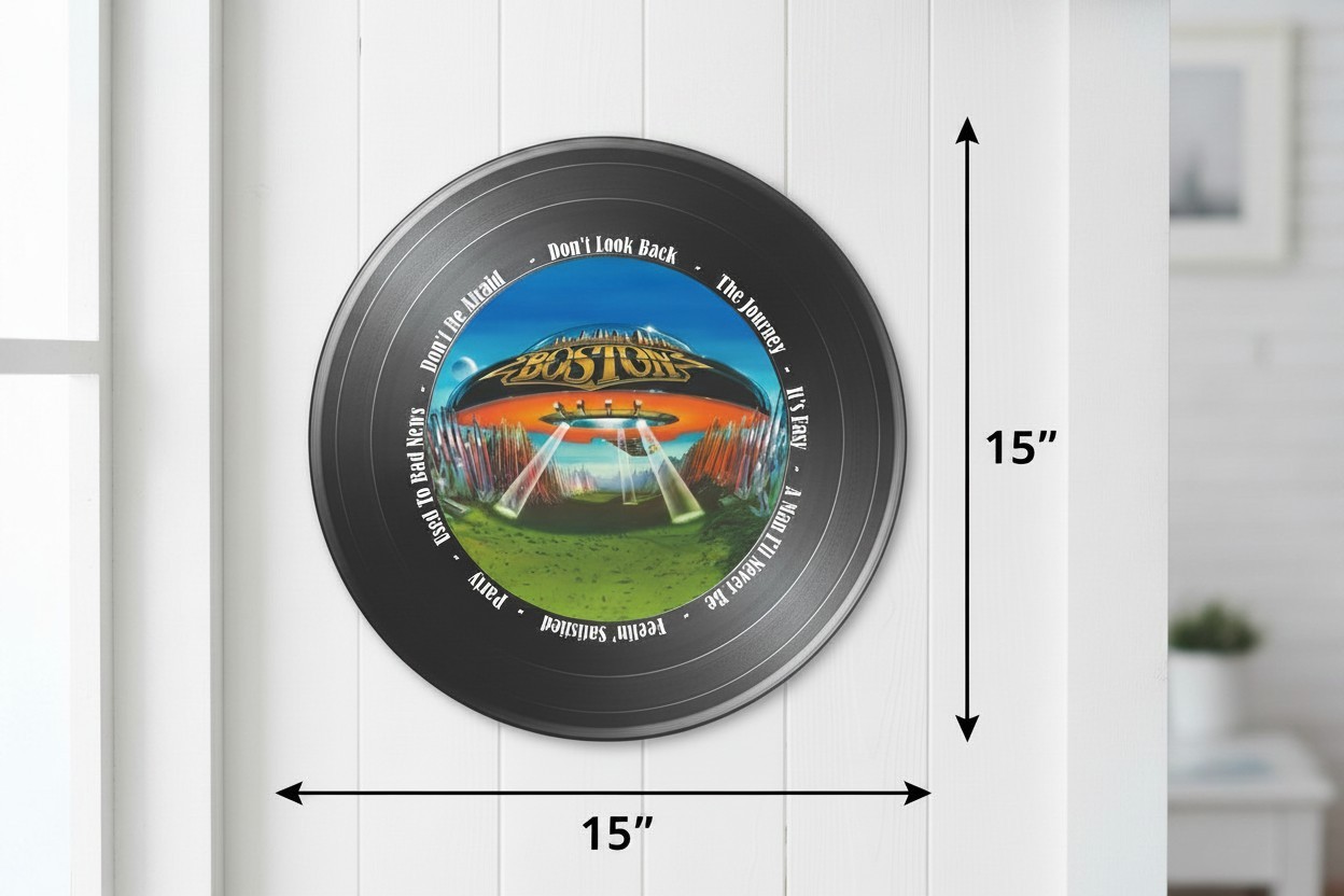 Experience the timeless essence of music with our handcrafted steel replica of the iconic Band Boston “Don’t Look Back” vinyl record. Made in small-town USA from heavy 14-gauge steel, this stunning piece features a durable powder-coated base, ensuring it stands the test of time. Measuring 15 inches in diameter, it serves as a perfect tribute to the legendary band Boston, making it an ideal addition to any music lover’s collection or a unique gift for a fellow enthusiast. Elevate your space with this exquisite blend of artistry and nostalgia. ( This record does not play, it is a metal sign for Decor )